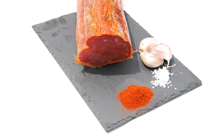 | Ingredientes | Lombo de porco preto 93%, pimentão, alho, sal, tripa artificial e aditivos (antioxidantes (E301, E316) e conservantes (E250, E252)). Contém Proteina Láctea |